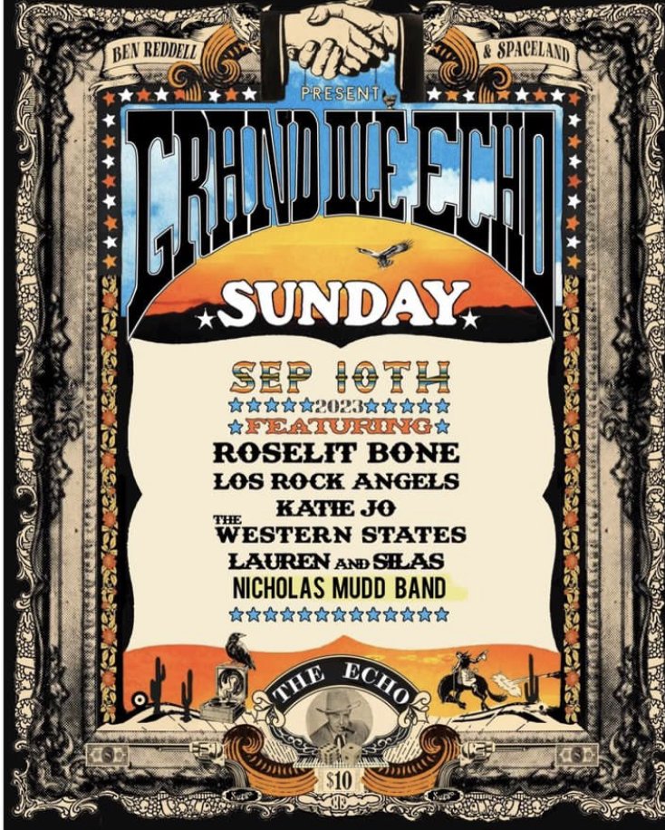 Summer is coming to an end but the hits just keep on coming at the Grand Ole Echo. Roselit Bone will headline with Los Rock Angels, The Western States, Katie Joe (all the way from Nashville!), Lauren & Silas and Nicholas Mudd carrying on the party with good vibes and great tunes all day long.