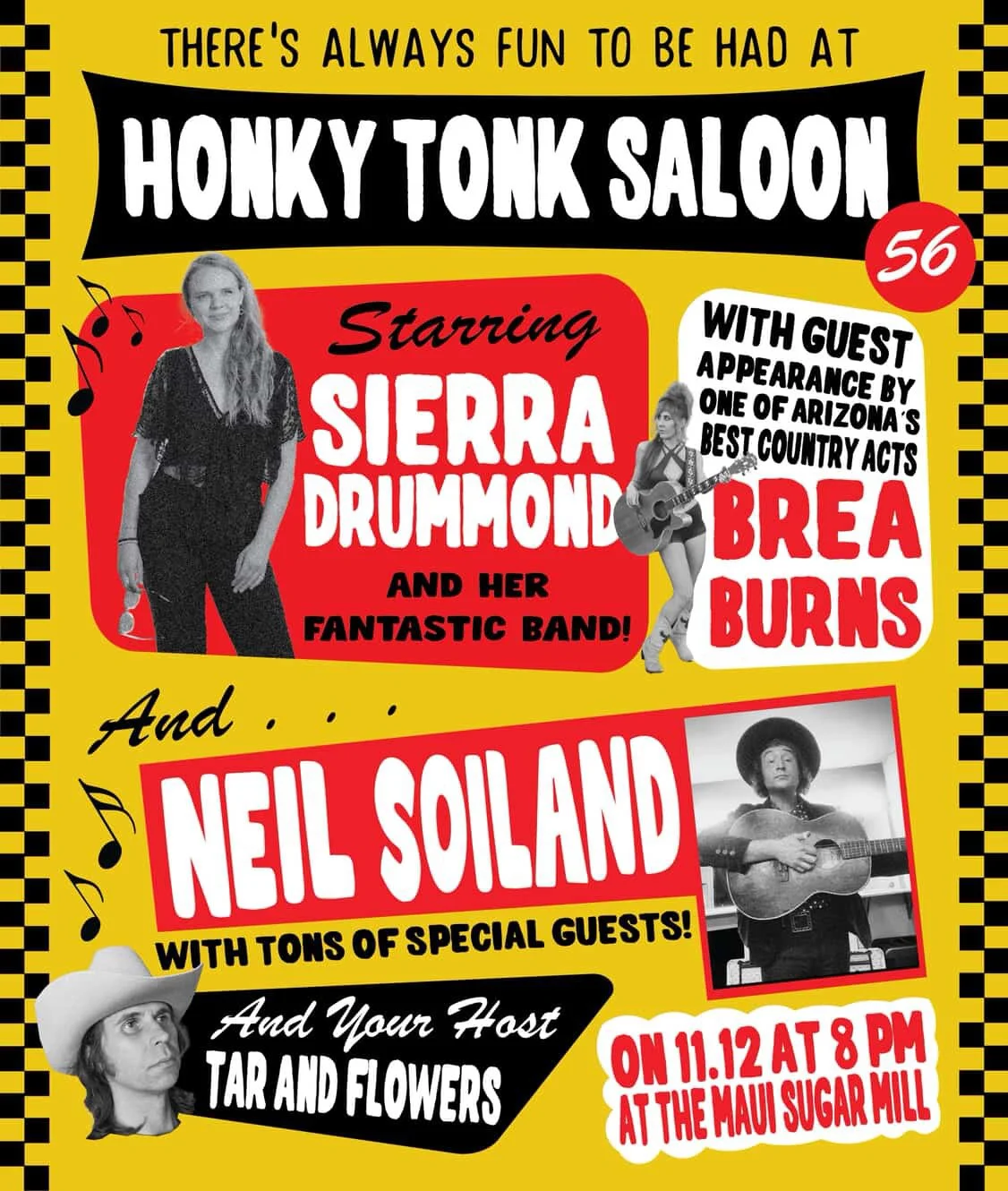 Maui Sugar Mill is at it again as host Tar and Flowers brings you the best in country/Americana in Los Angeles! Sierra Drummond, Brea Burns, and Neil Soiland will all be playing sets at the only place to see original country music in the San Fernando Valley.