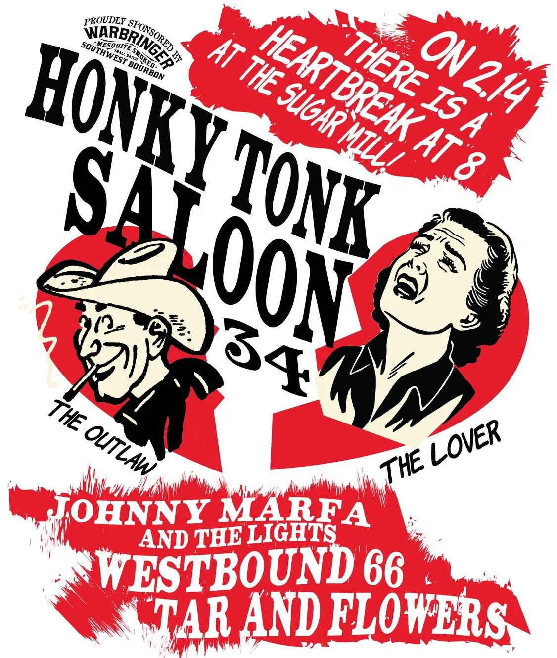 Valentine’s Day is for lovers: lovers of country music that is! Tar & Flowers hits the stage to sing sweet nothings before Westbound 66 and Johnny Marfa & the Lights set our hearts on fire with their firebrand of country music! Bring a date or find one here.