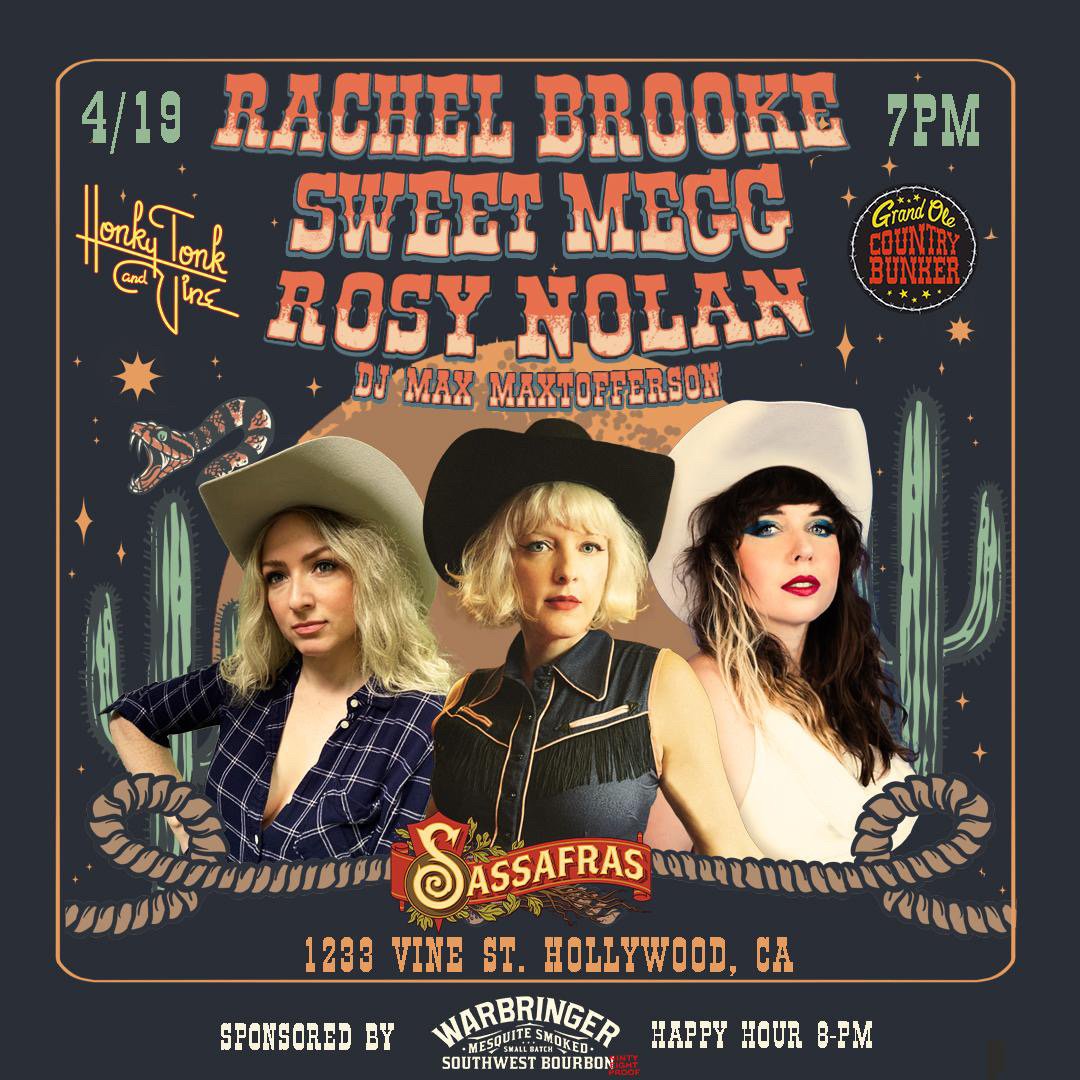 Grand Ole Country Bunker has a doozie of a show lined up for his next Honky Tonk & Vine series at Sassafras Saloon! All the way from Nashville, Ameripolitan Music Award winner Rachel Brooke will be in the house to sing us some tunes and she’ll be joined by Rosy Nolan on the Los Angeles tour stop of their Southern California tour. Sweet Megg will round out the evening for a night of country music that is not to be missed. And we’re stoked to have Max Maxey spinning all the hottest country vinyl! It’s going to be the hottest night in Hollywood and it’s all free.