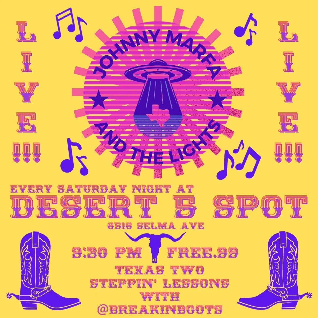 Want a little taste of Texas in the Heart of Hollywood? Then you need to head to Desert 5 Spot on Saturdays! Johnny Marfa and the Lights will play some ripping live country music all night, but get there early to take advantage of the free two-stepping lessons from Breakin’ Boots. Bring a friend or come alone and meet your new dance partner!