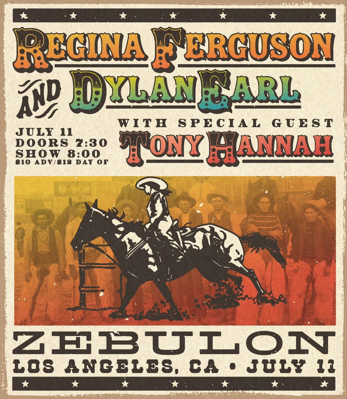 It will be a special night of country music at Zebulon as two modern-day troubadours pass through Los Angeles to play some Americana for ya! Dylan Earl has made the journey from Arkansas and Tony Hannah from Nashville to join forces with Regina Ferguson of LA on this not-to-be-missed event.