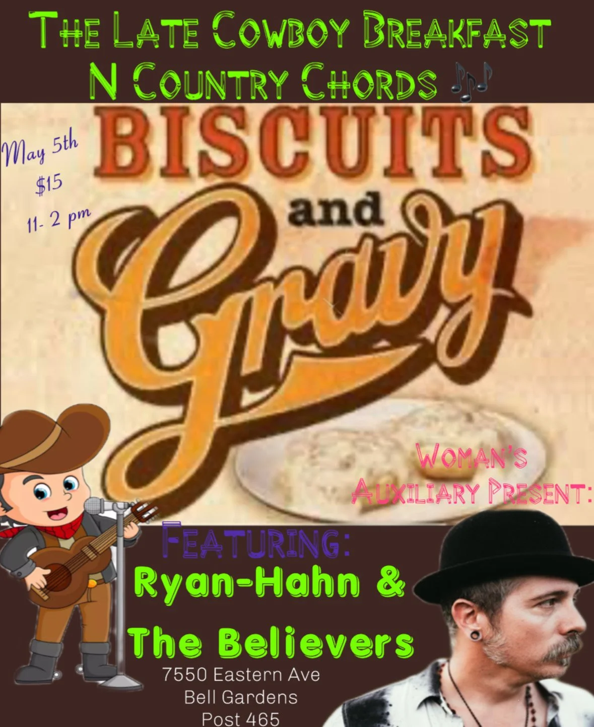 Head on over the the American Legion in Bell Gardens for a late breakfast and some rockin’ country music presented by the Woman’s Auxillary! Come hungry for a late breakfast of biscuits and gravy (served for free to everyone who purchases a ticket!) and start your Sunday the right way with some good music and good company.